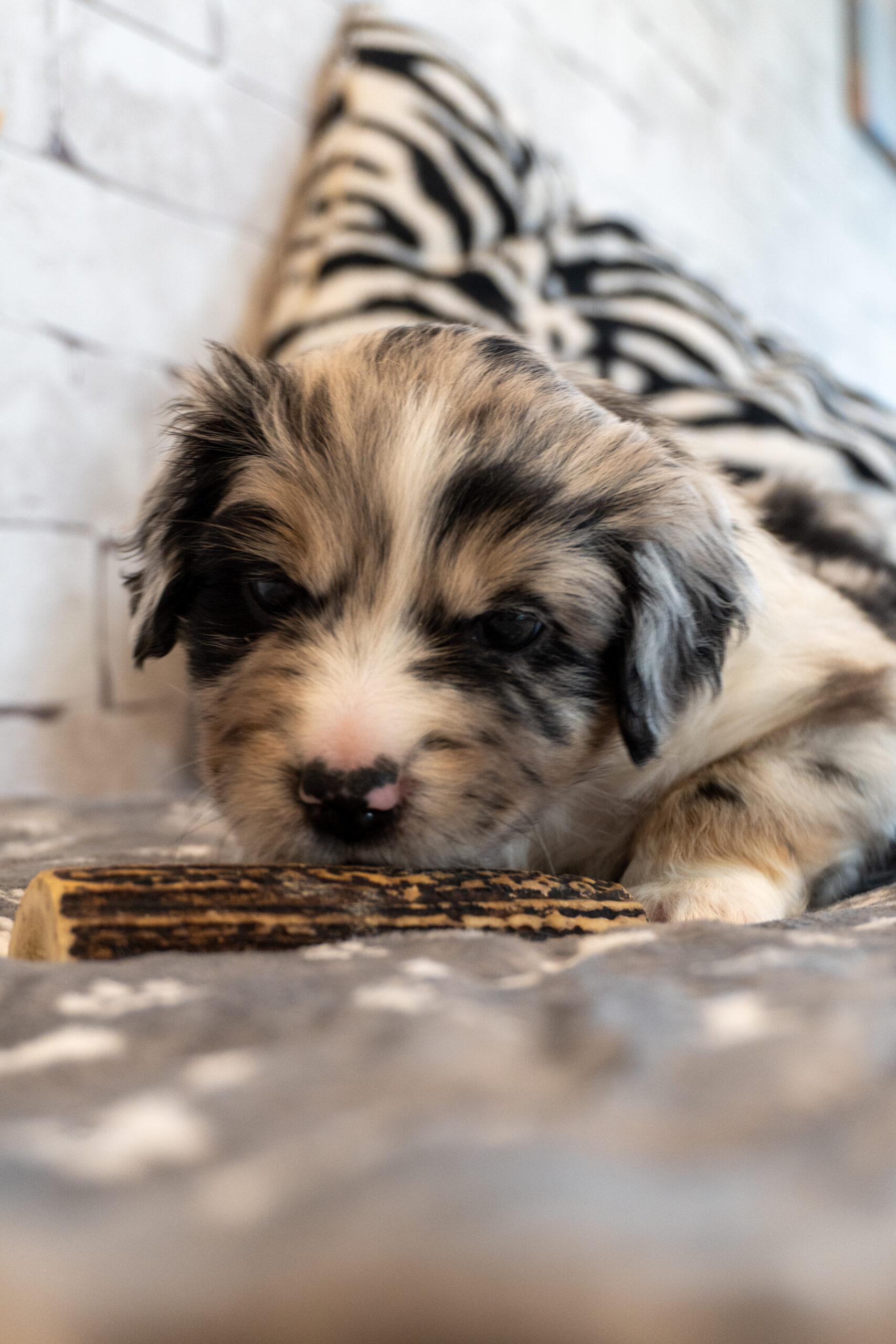 Le 19 octobre, 12 merveilles ont pointé le bout de leur nez , et comme Shanell a accepté de me faciliter le travail pour l’aider , il y a 6 chiots bleu merle (bicolore et tricolore) et 6 chiots noir (bicolore et tricolore).